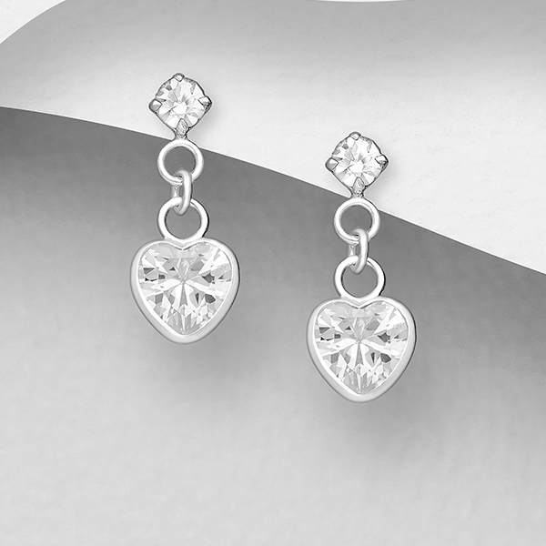 Boucles d’oreilles coeur en cristal blanc et en argent 925ème