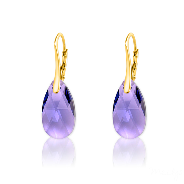 Boucles d’oreilles en Argent 925e Plaqué Or jaune 18k, cristal goutte 16 mm Swarovski Elements Tanzanite