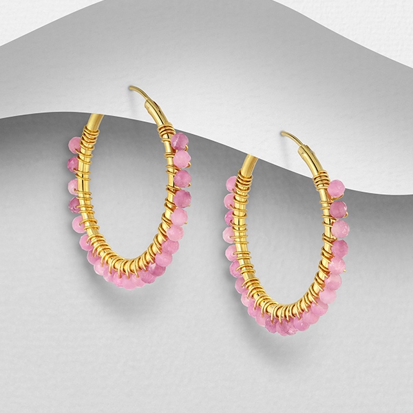 Boucles d’oreilles en argent 925ème plaqué or 18k et Tourmalines Roses