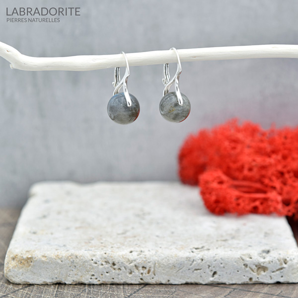 Boucles d’Oreilles en Pierres Naturelles 10mm sur Dormeuses en Argent Labradorite