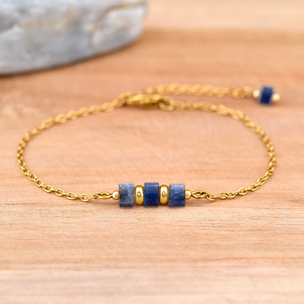 Bracelet Nora en acier inoxydable doré et Pierres Naturelles Heishi 4 mm – Sodalite