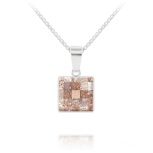 Collier Chessboard en argent et Cristal 10mm Rose Patina