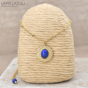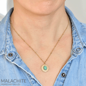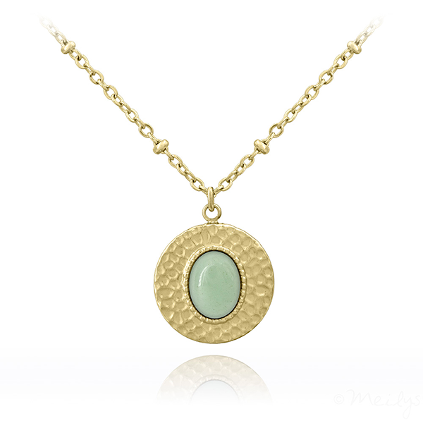 Collier Isis en acier inoxydable doré et Pierres Naturelles 8 x 6 mm – Aventurine