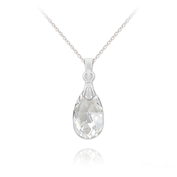 Collier Mini Goutte 16mm en Argent et Cristal Crystal blanc Swarovski et d’une chaîne de 42cm / 1,2mm en argent