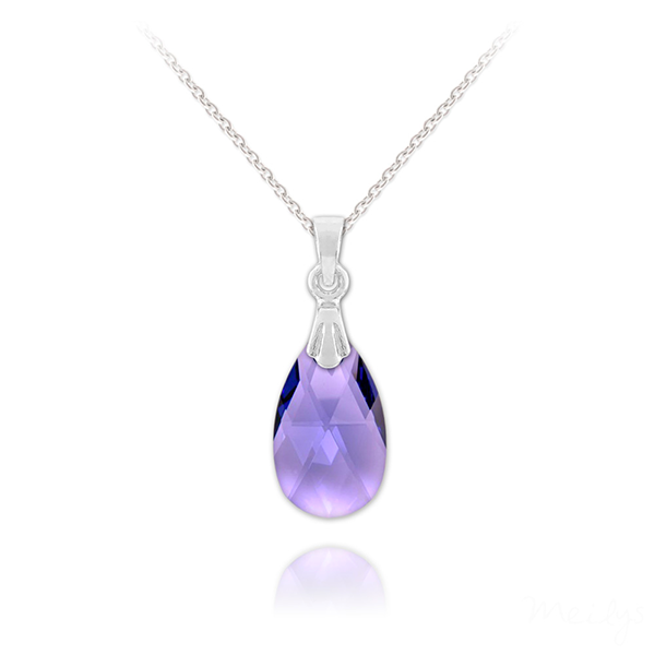 Collier Mini Goutte 16mm en Argent et Cristal Tanzanite Swarovski et d’une chaîne de 42cm / 1,2mm en argent