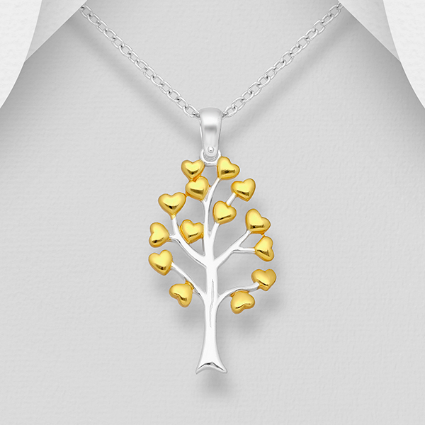 Pendentif Arbre de Vie en argent 925ème et coeurs plaqués or 14 k