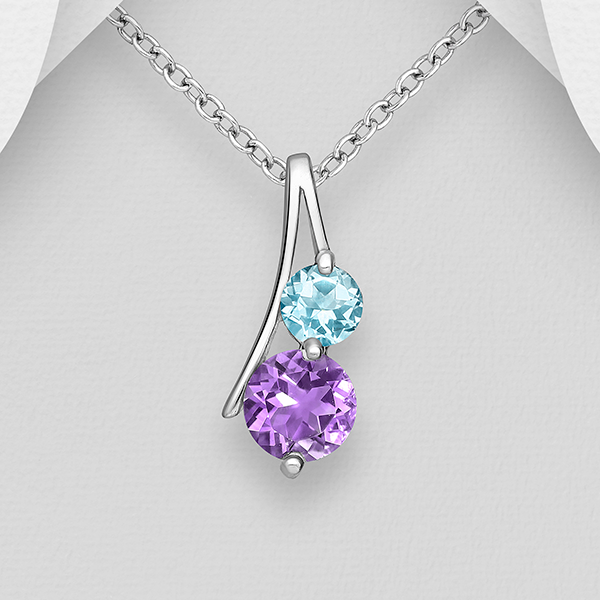 Pendentif en argent 925ème et Topaze bleu ciel et Améthyste