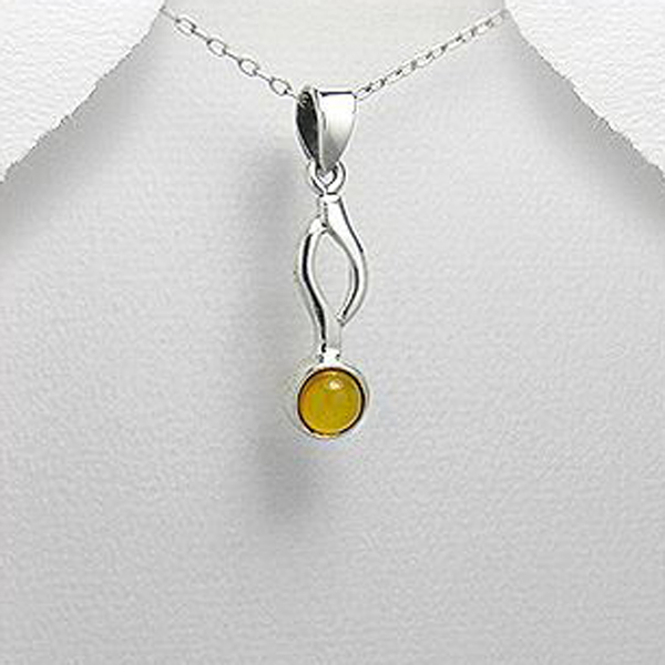 Pendentif en argent massif et ambre baltique miel