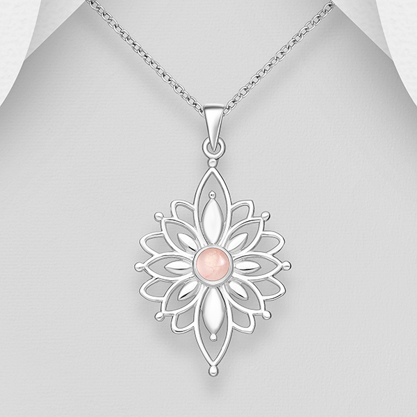 Pendentif Fleur en argent 925ème et Quartz Rose