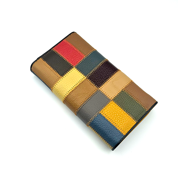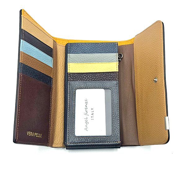Portefeuille porte-cartes Multicolore en cuir, fermeture du portemonnaie par zip, un double compartiment pour papier et CB, fermeture par rabat à bouton pression