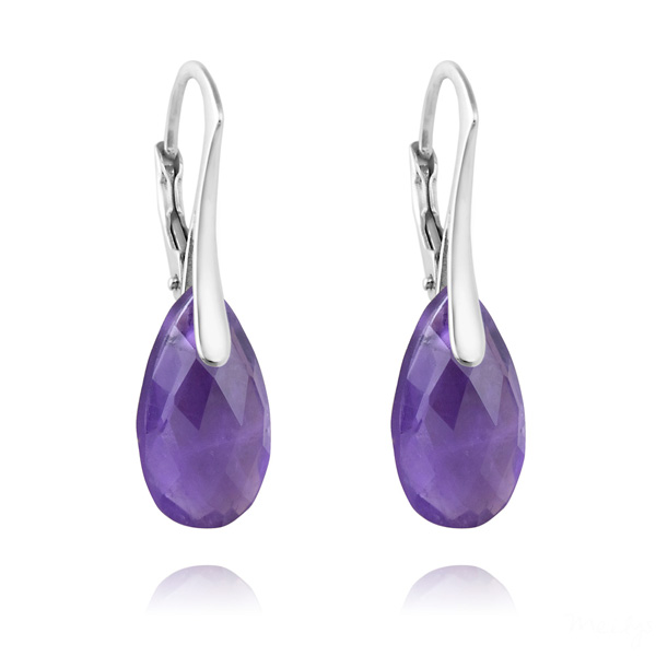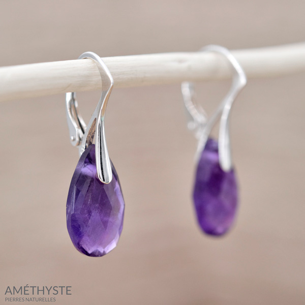 Boucles d’Oreilles Goutte à Facettes 16mm sur Dormeuses en Argent et Pierres Naturelles Améthyste