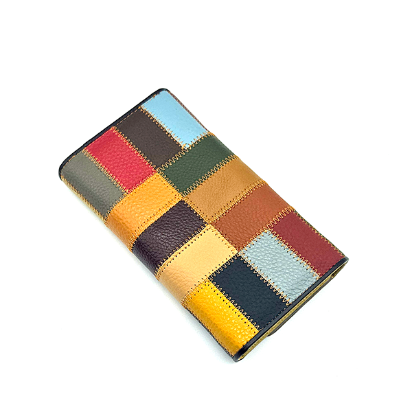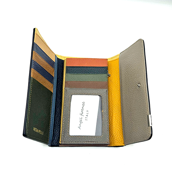 Portefeuille porte-cartes Multicolore en cuir, fermeture du portemonnaie par zip, un double compartiment pour papier et CB, fermeture par rabat à bouton pression